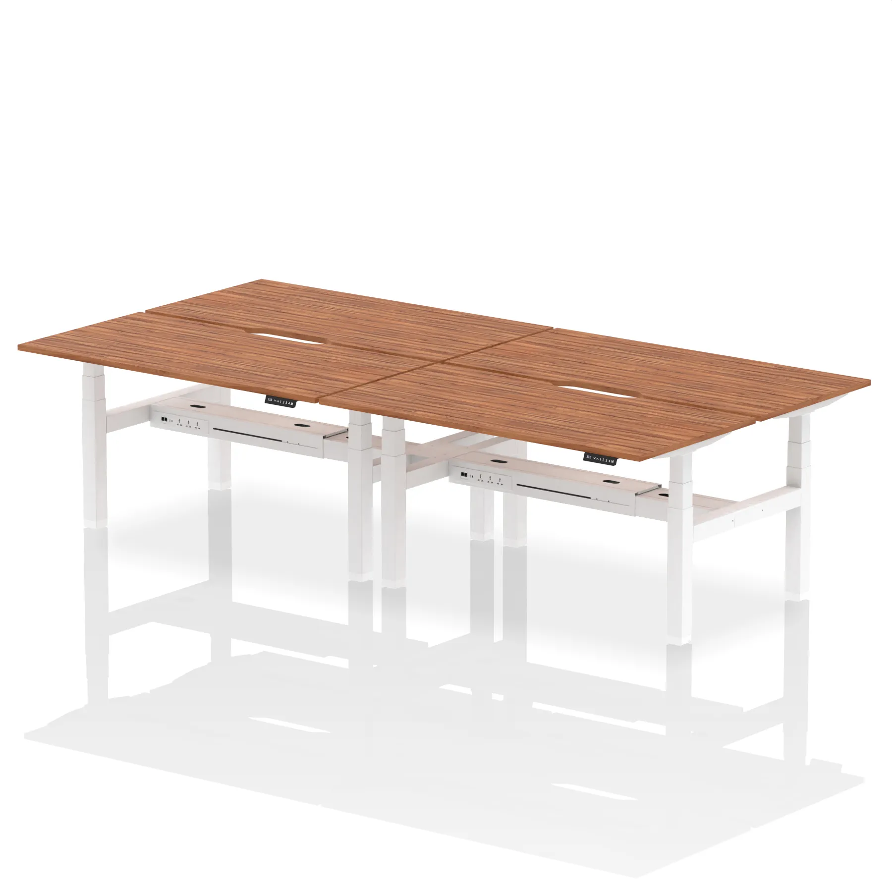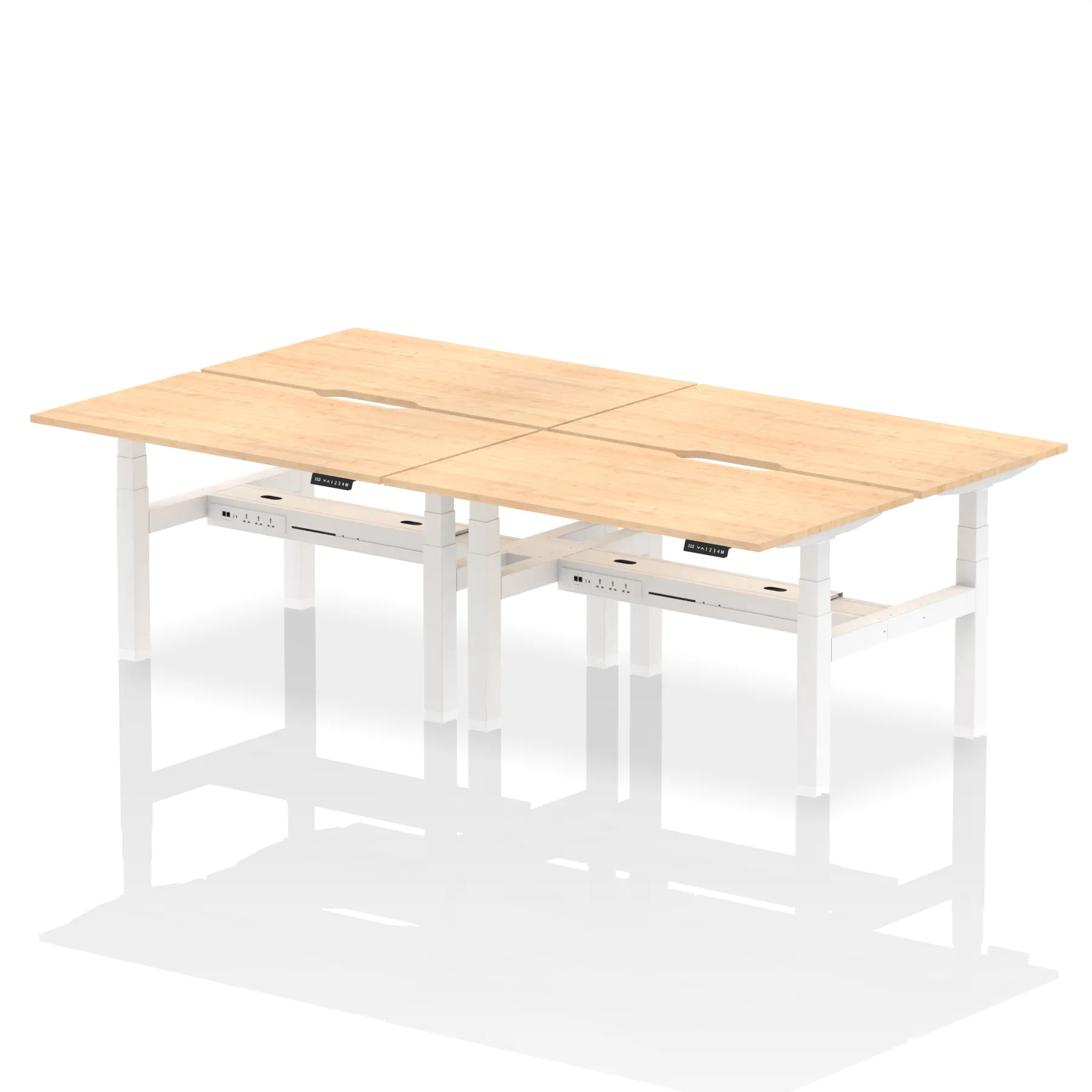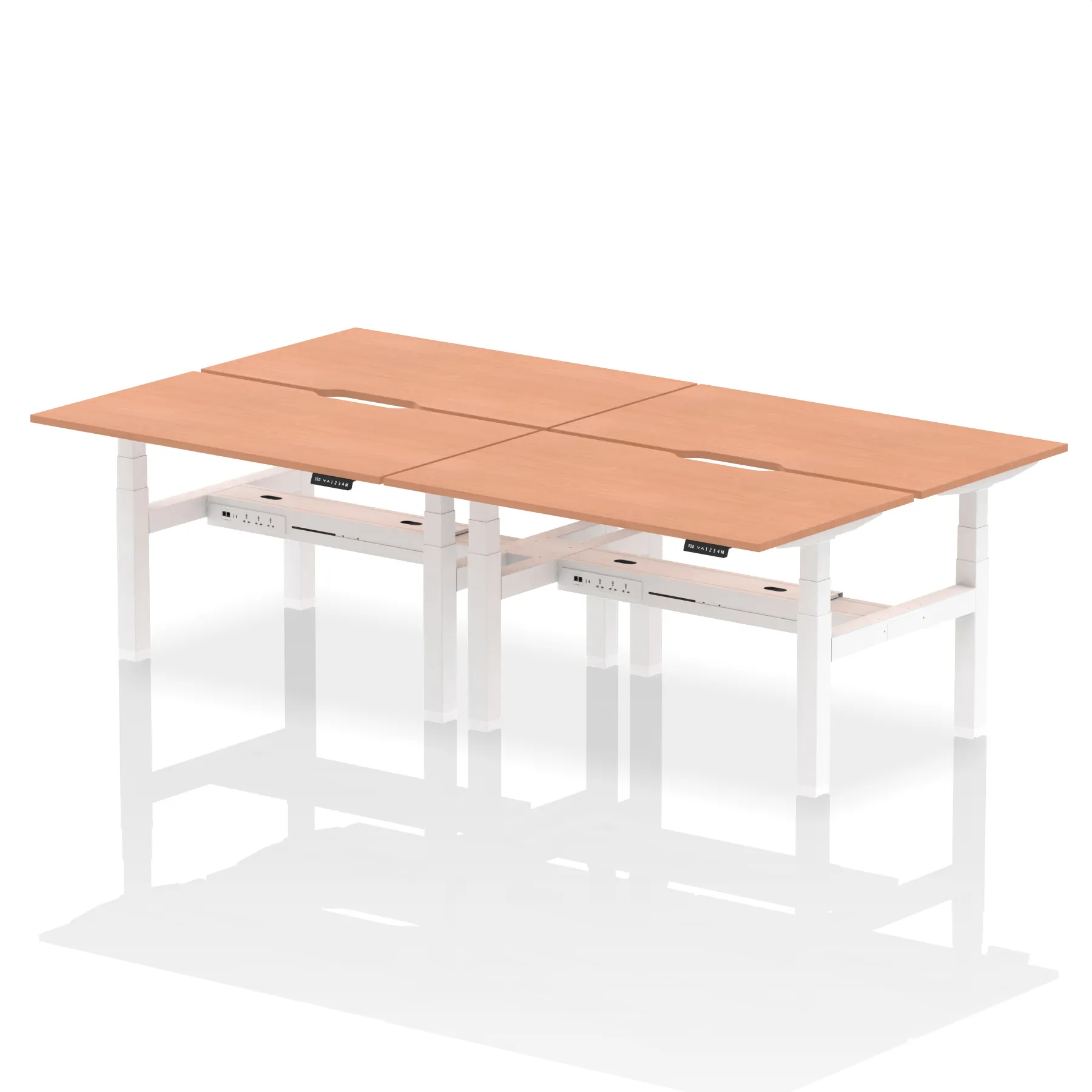 Elevate your team’s workspace with the Air Back-to-Back Height Adjustable Desk for four. This workstation features stylish scalloped edging and is equipped with two Ethernet ports, a USB port, a USB-C port, and three UK plugs per desk, ensuring optimal connectivity. The adjustable height promotes ergonomic working positions. Designed for collaboration and efficiency, it’s the perfect blend of aesthetics and functionality for the modern office.