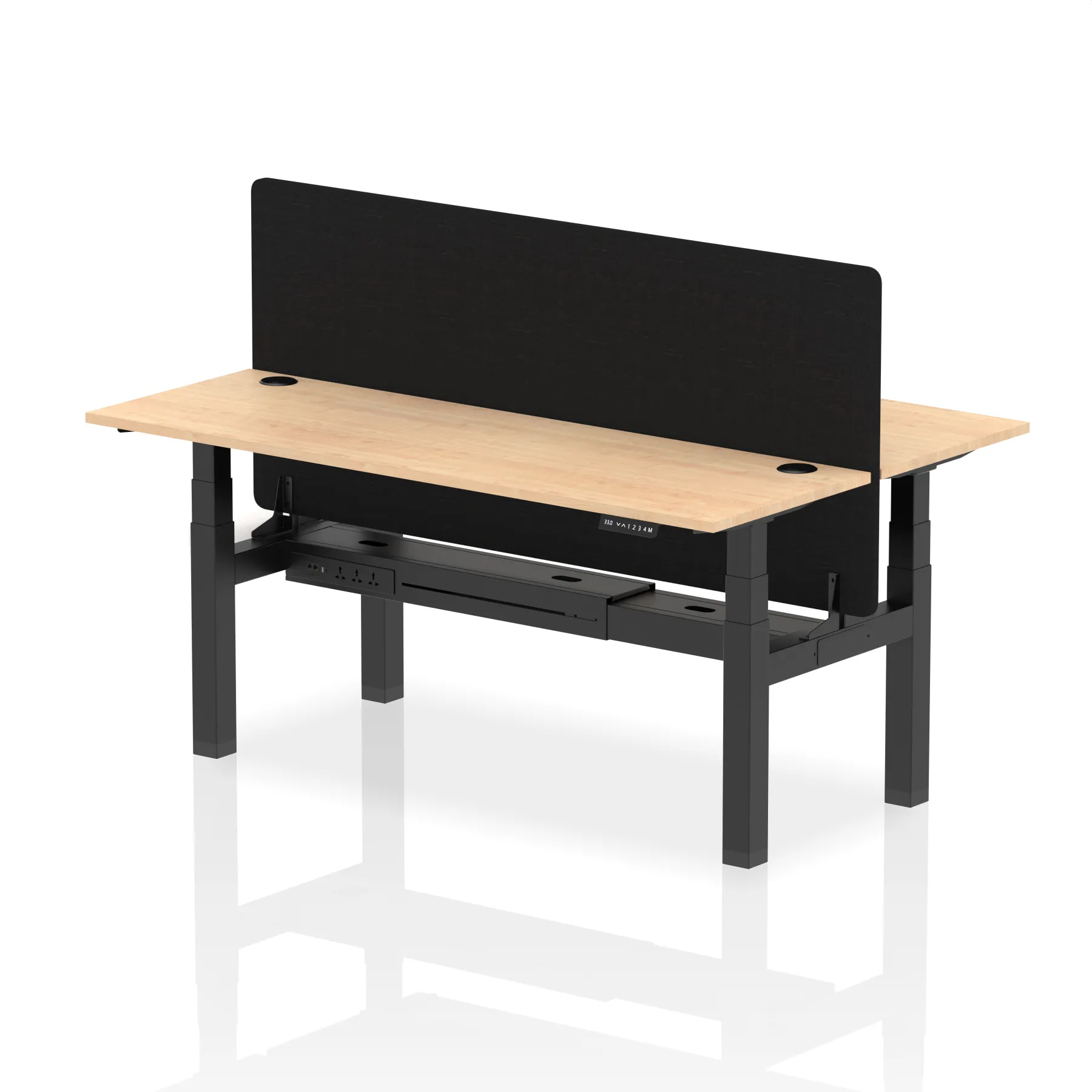 Air Back-to-Back Slimline Height Adjustable Bench Desk – 2 Person with Black Straight Screen