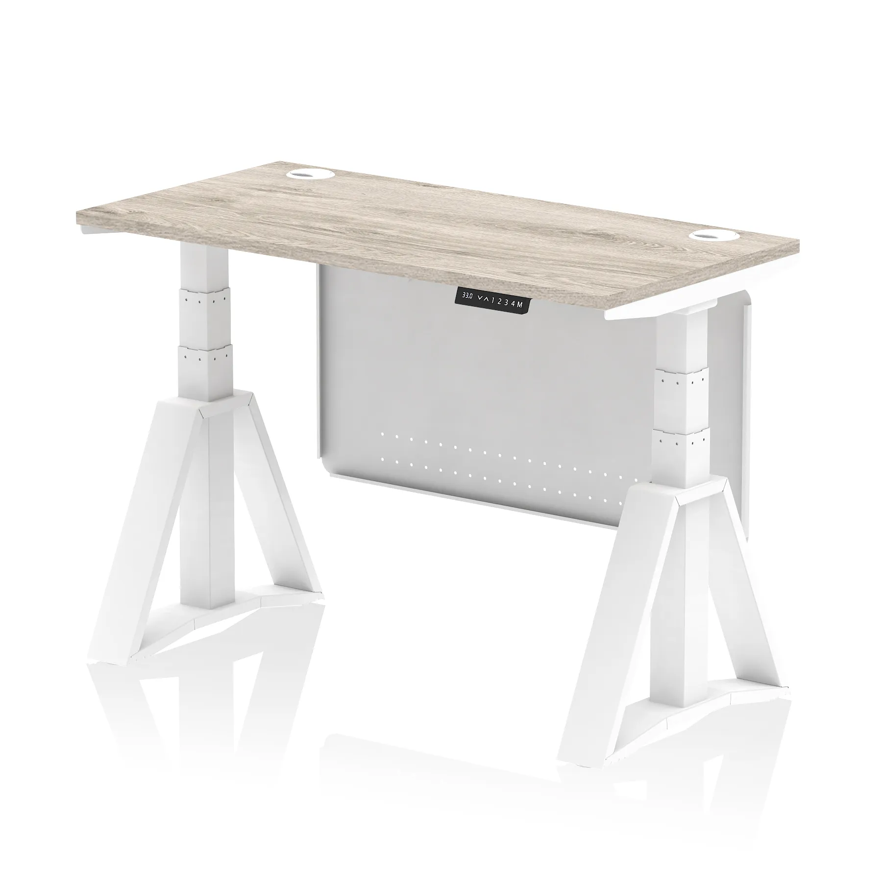 Be the first to review “Air Height Adjustable Slimline Desk With Cable Ports With Steel Modesty Panel With Piste Foot”