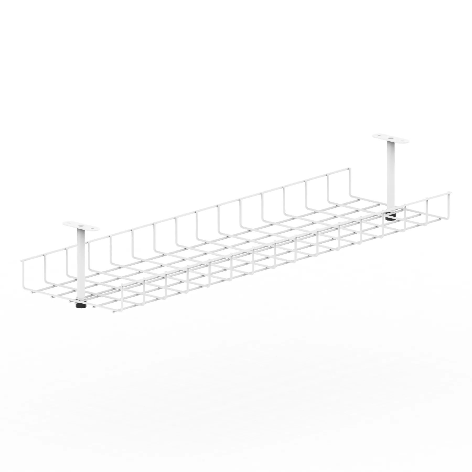 Silver nylon coated wire basket | Open structure to keep contents cool | Flip down feature for easy management | Accommodates transformers, cable and other under desk items