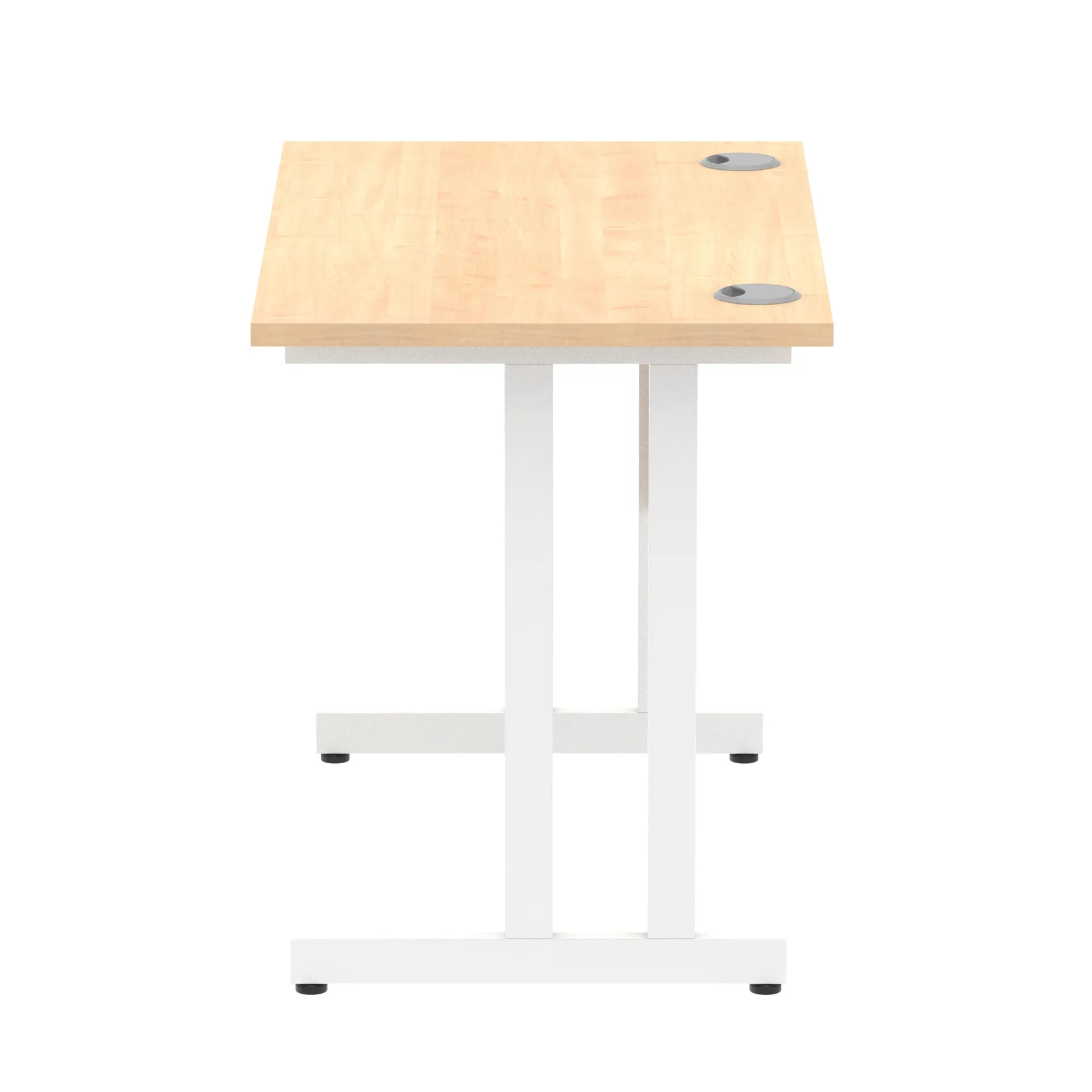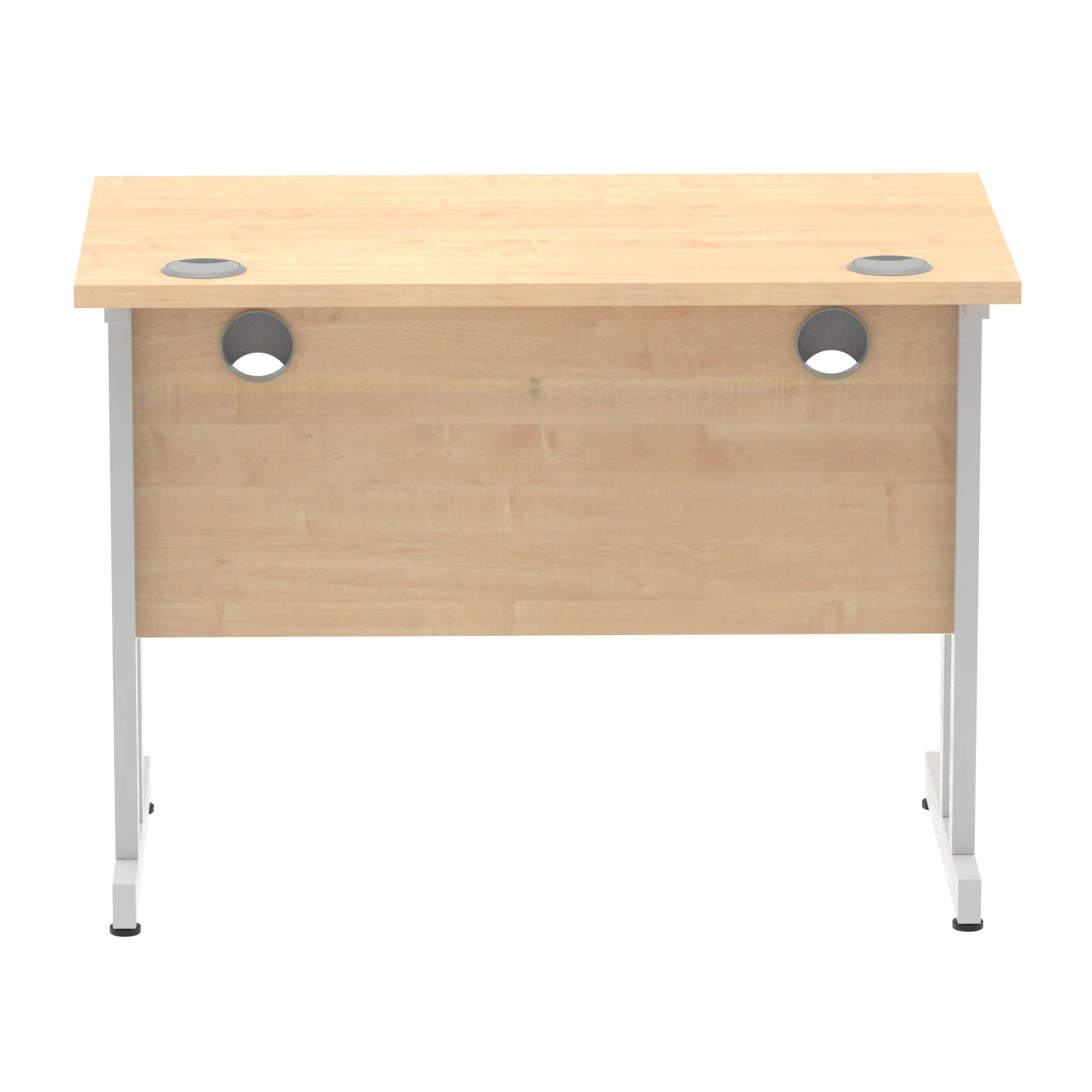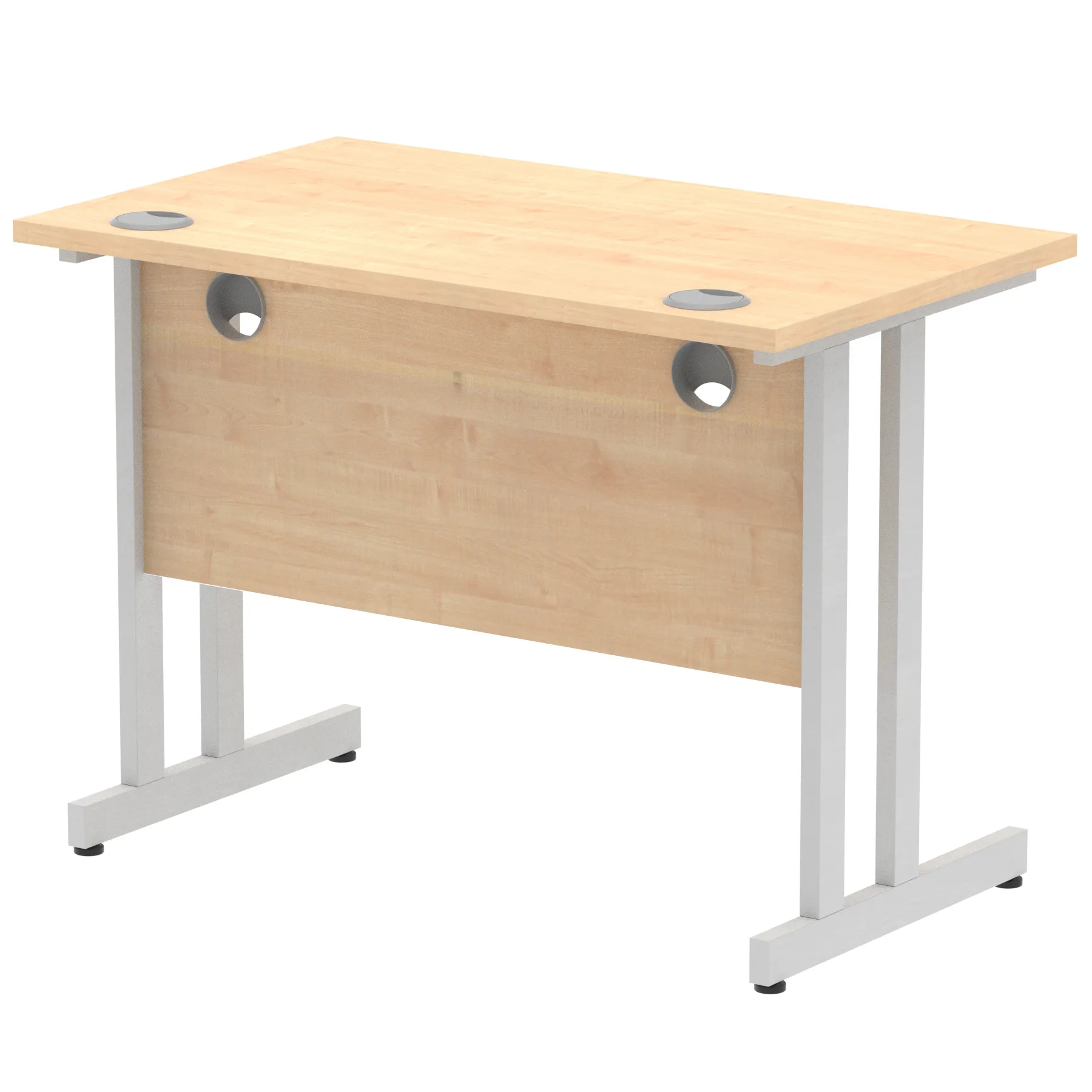 Impulse contract desk | 25mm tops | Heat resistant melamine finish | 18mm modesty panels | 2mm protective abs edging | Double strut legs | 2 cable ports | Height adjustable feet | Steel to steel fixings | 2 modesty panels slots| Deep set modesty panel (5″) allows for compatibility of most screen clamp fittings | Weight Capacity 135Kg