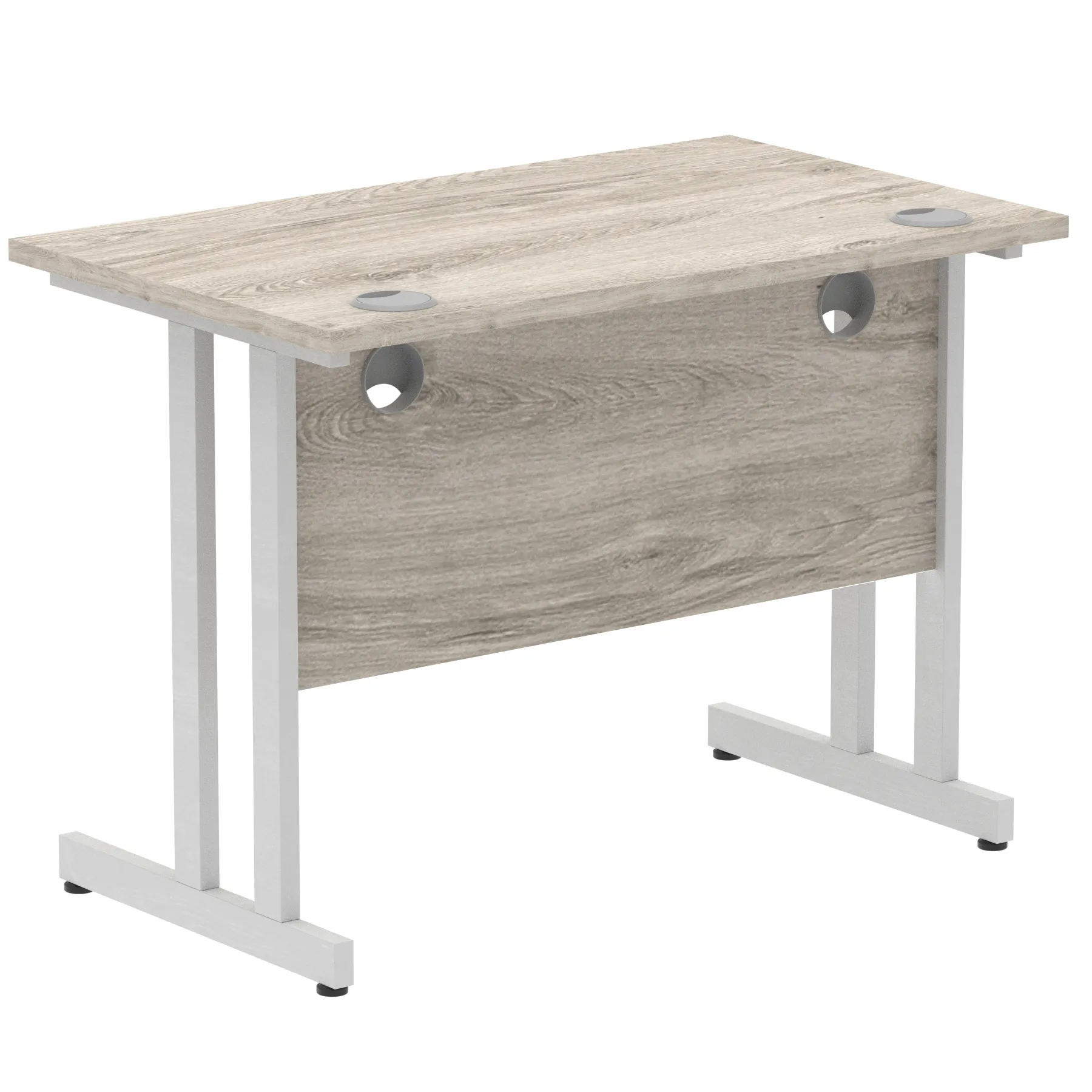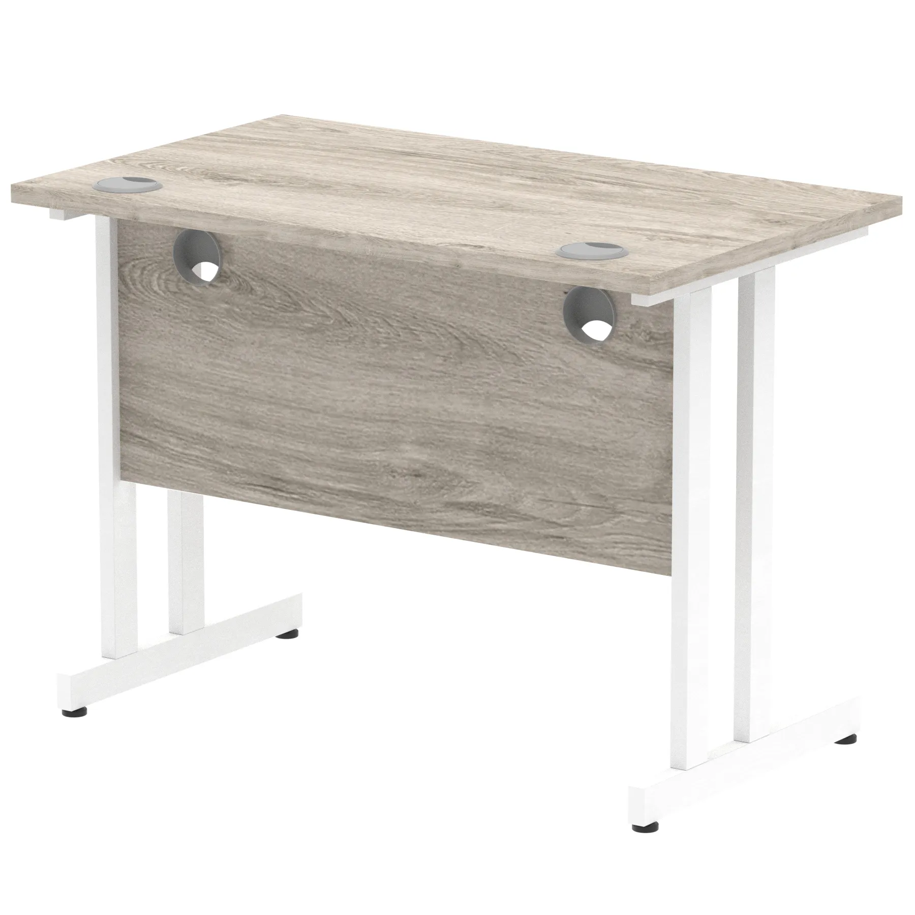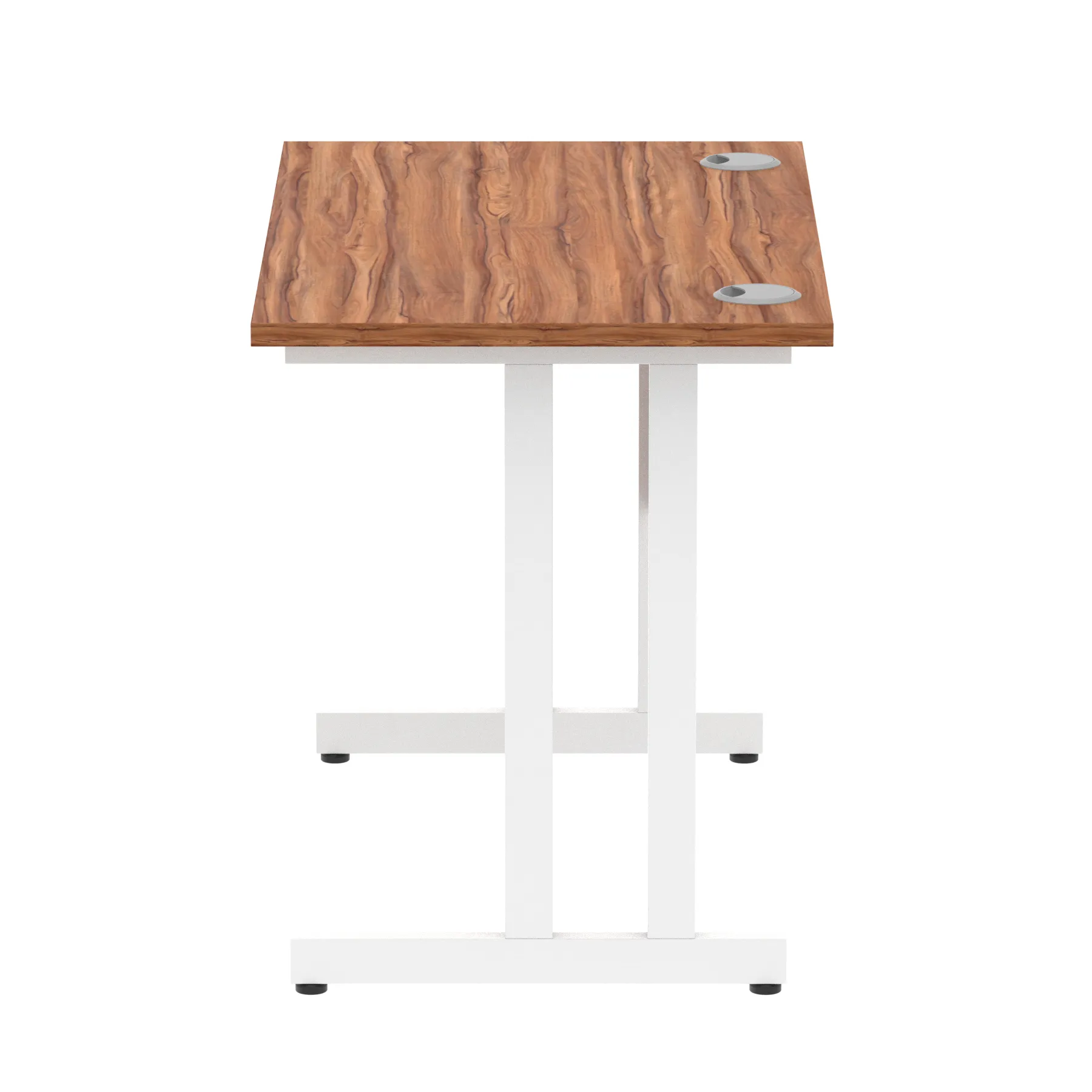 Impulse contract desk | 25mm tops | Heat resistant melamine finish | 18mm modesty panels | 2mm protective abs edging | Double strut legs | 2 cable ports | Height adjustable feet | Steel to steel fixings | 2 modesty panels slots| Deep set modesty panel (5″) allows for compatibility of most screen clamp fittings | Weight Capacity 135Kg