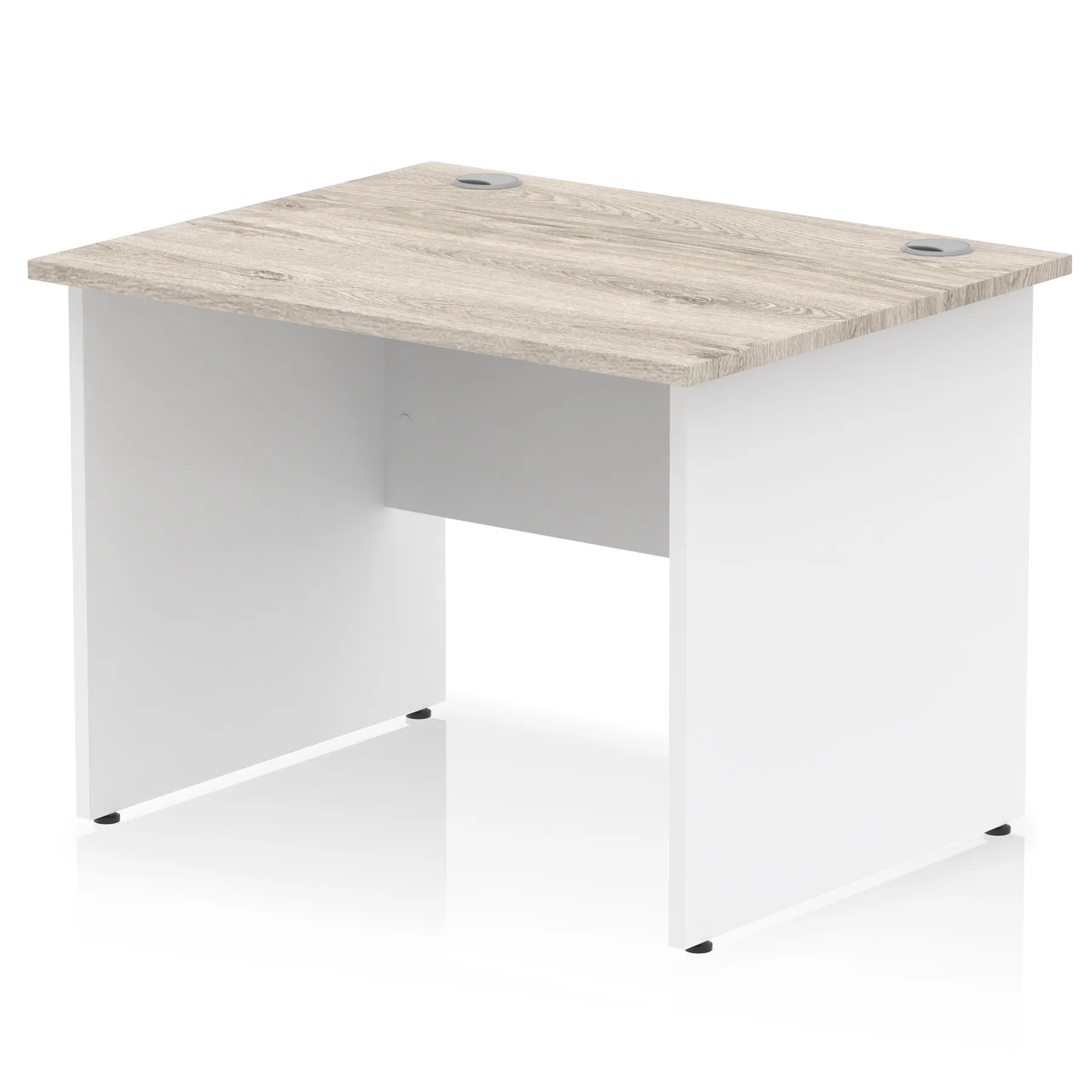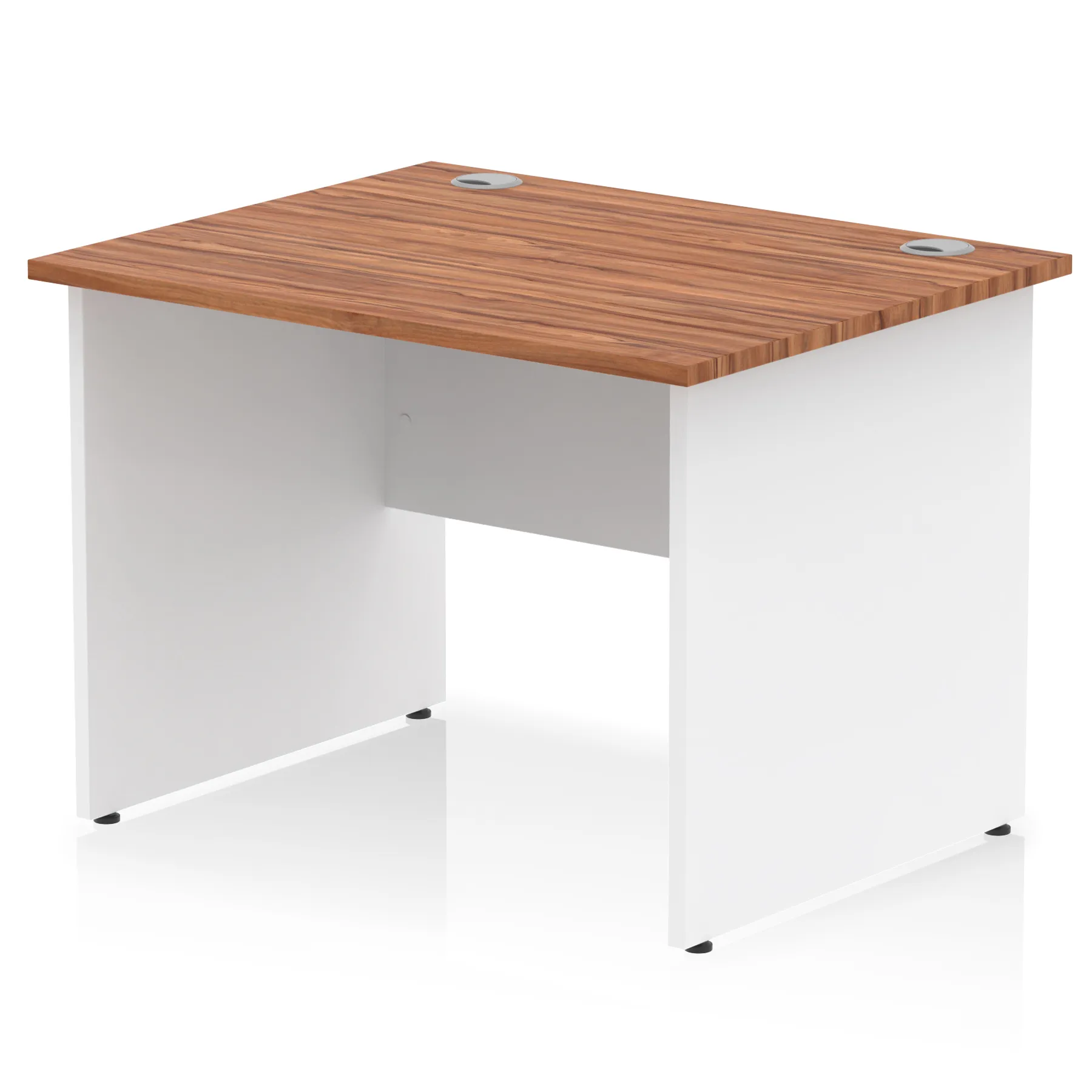 Impulse contract desk | 25mm tops | Heat resistant melamine finish | 18mm modesty panel | 2mm protective abs edging | Matching wood panel end legs | 2 cable ports | Height adjustable feet | Steel to steel fixings | 2 modesty panel slots | Deep set modesty panel (5″) allows for compatibility of most screen clamp fittings | Weight Capacity 135Kg
