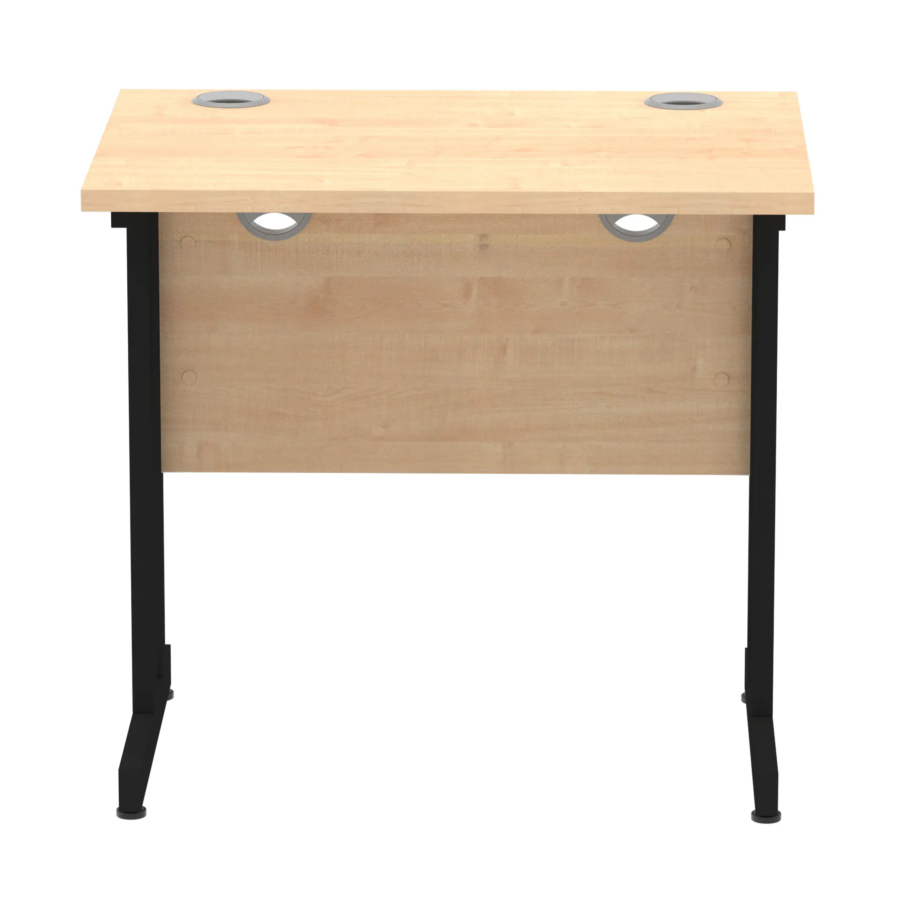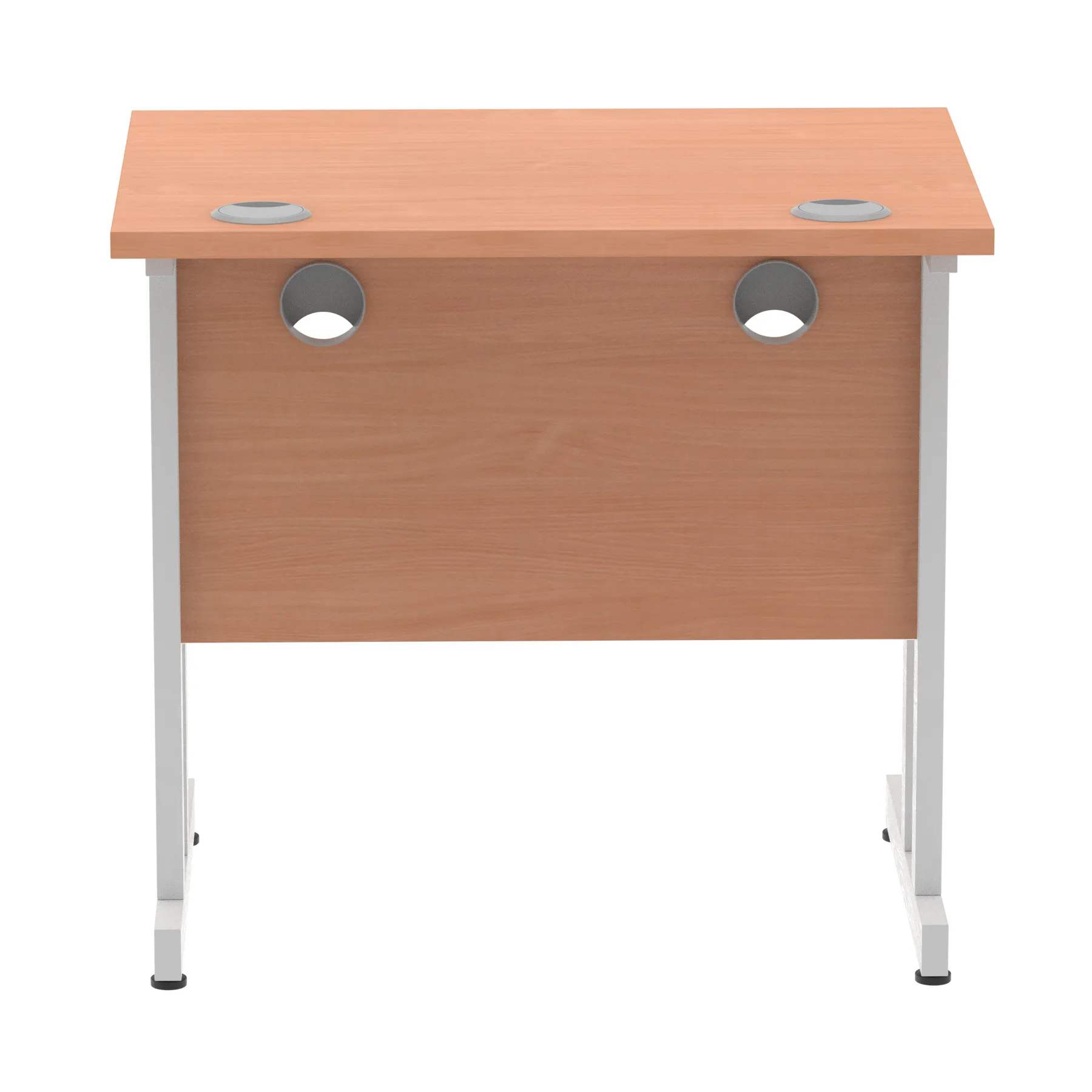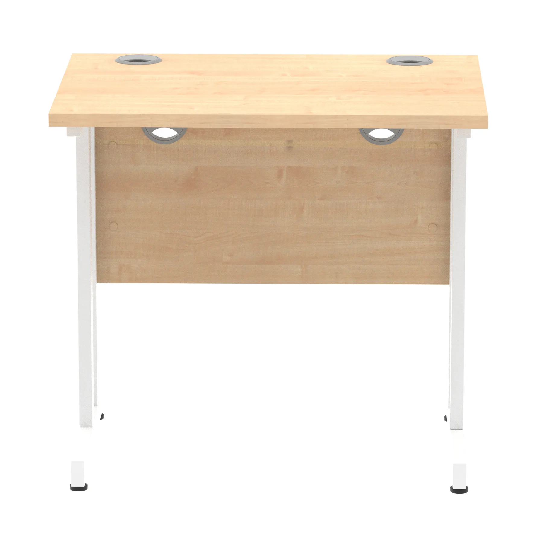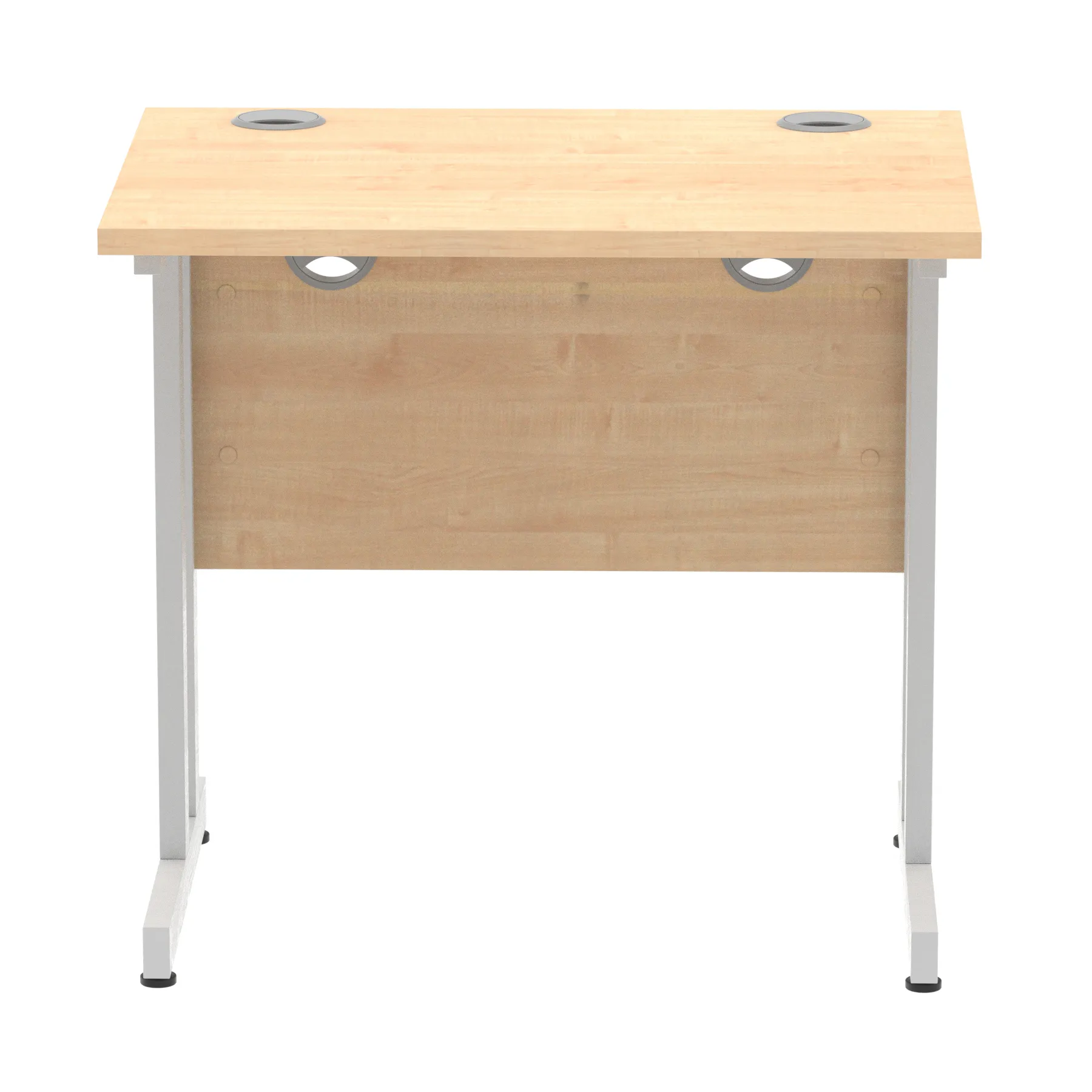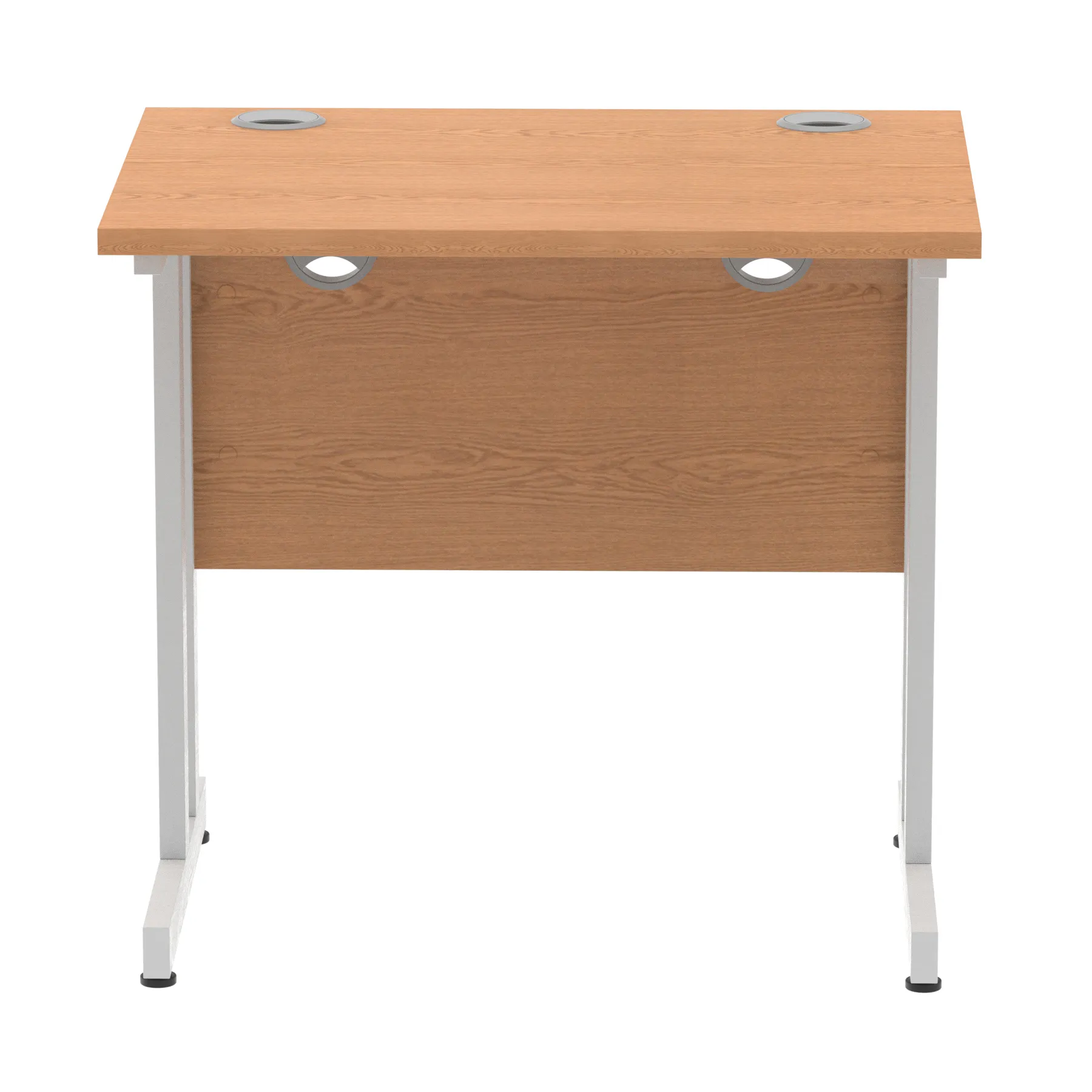 Impulse contract desk | 25mm tops | Heat resistant melamine finish | 18mm modesty panels | 2mm protective abs edging | Silver coated double strut legs | 2 cable ports | Height adjustable feet | Steel to steel fixings | 2 modesty panels slots| Deep set modesty panel (5″) allows for compatibility of most screen clamp fittings | Weight Capacity 135Kg