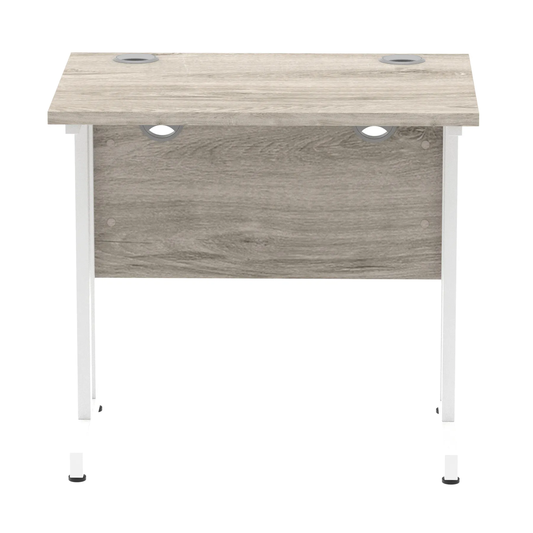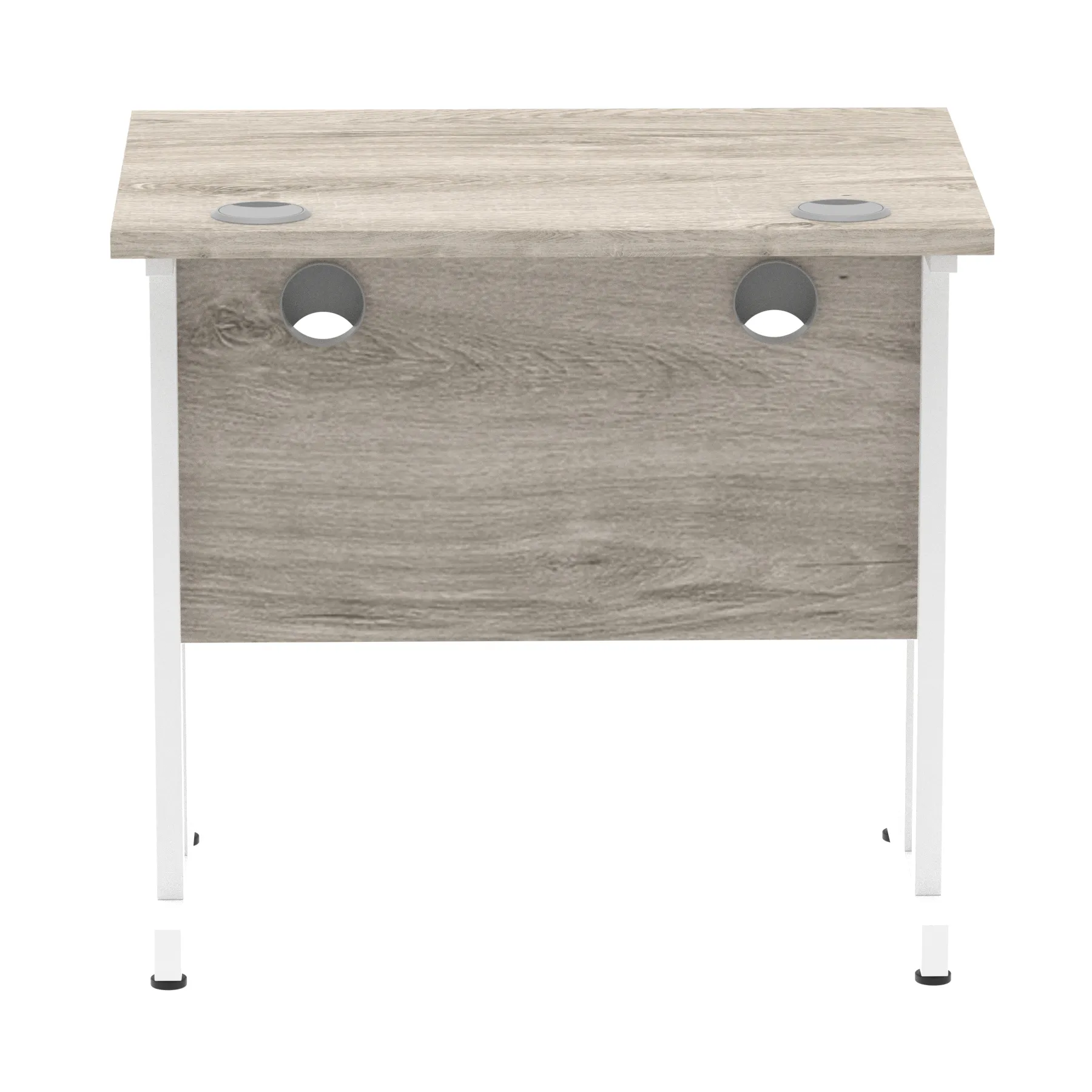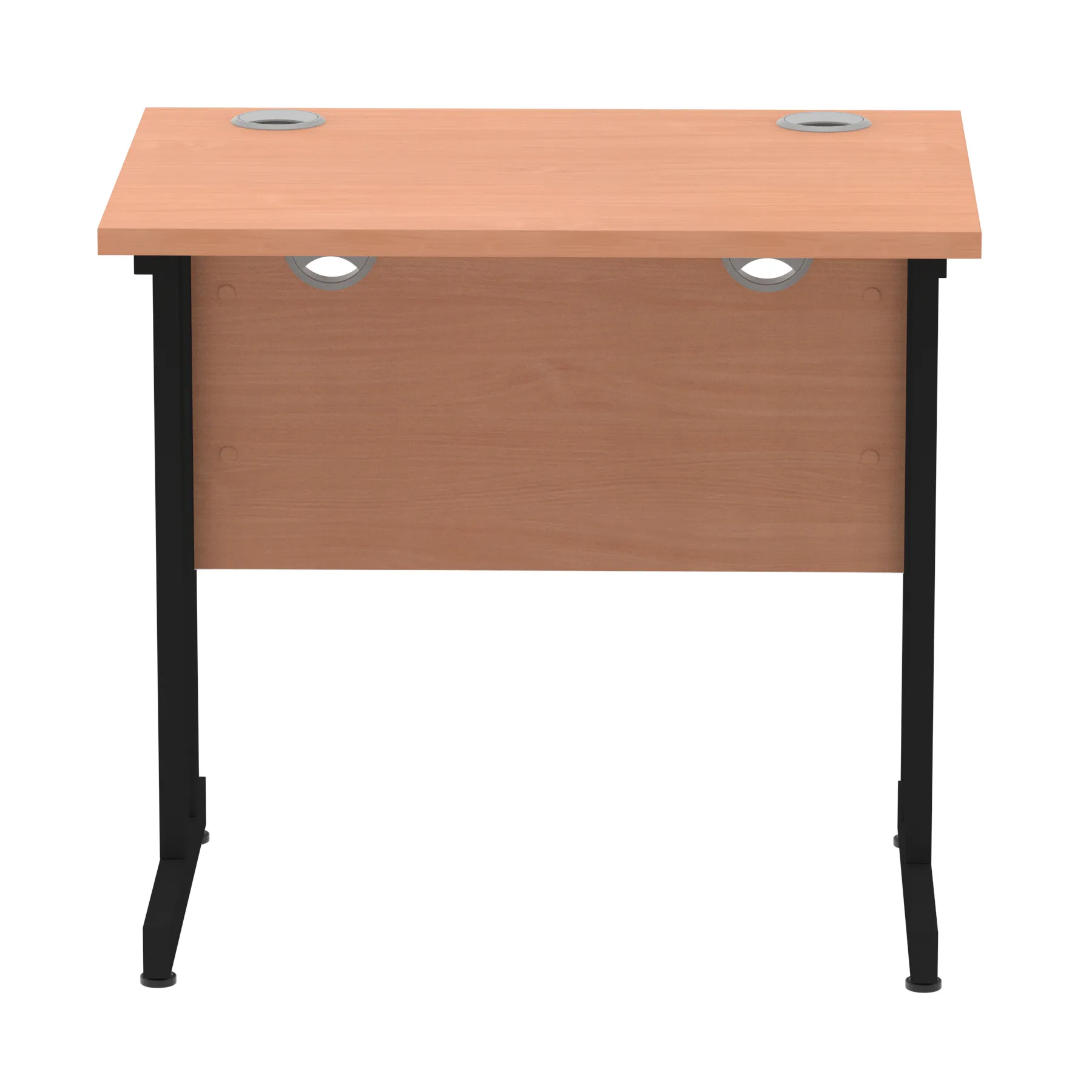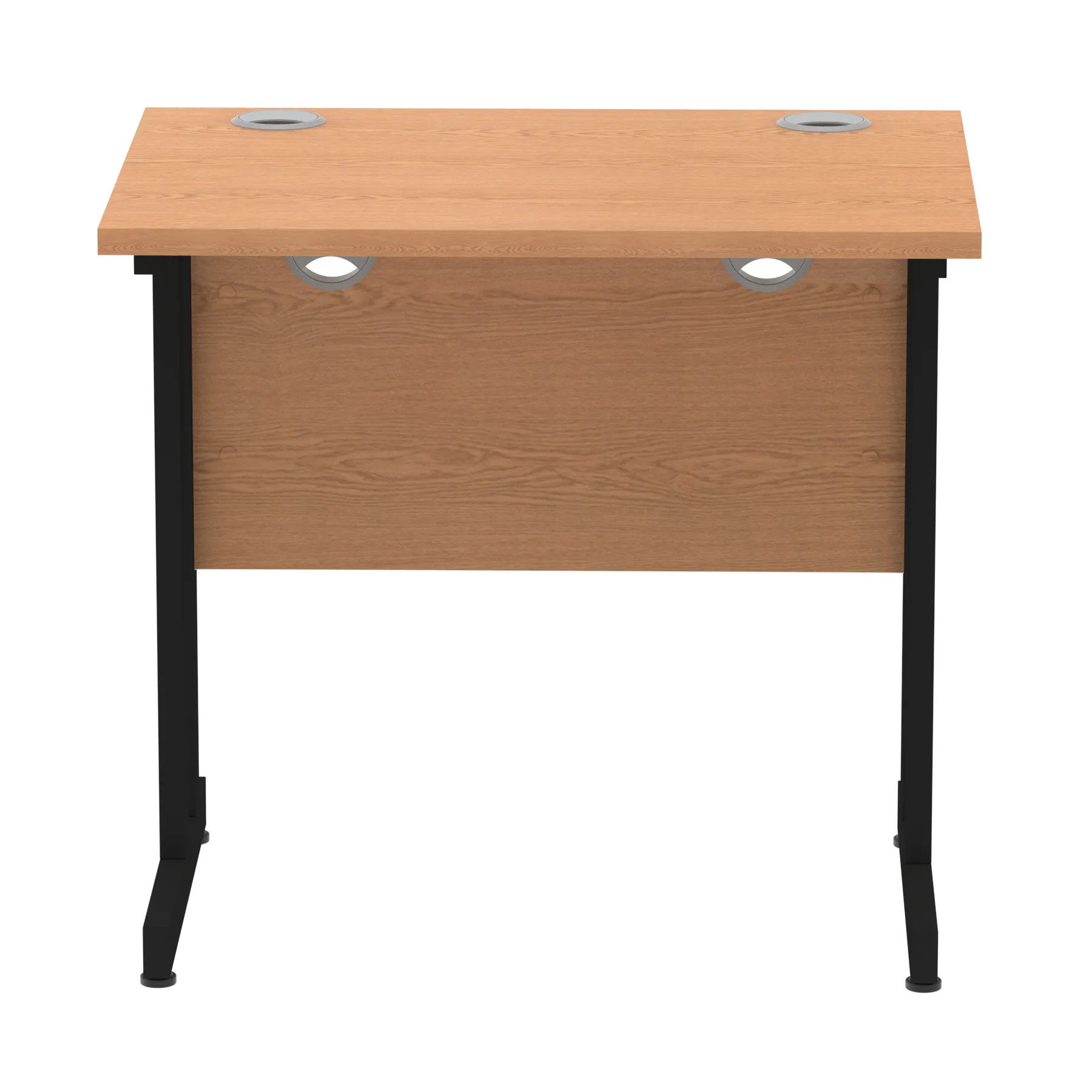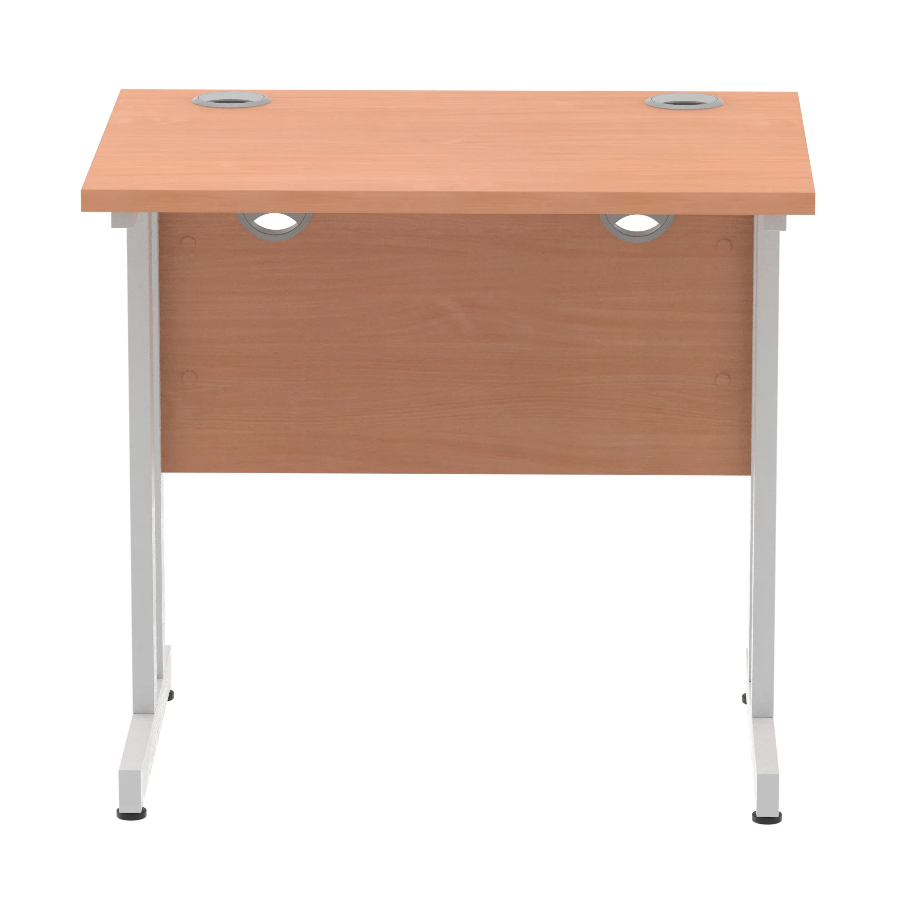 Impulse contract desk | 25mm tops | Heat resistant melamine finish | 18mm modesty panels | 2mm protective abs edging | Silver coated double strut legs | 2 cable ports | Height adjustable feet | Steel to steel fixings | 2 modesty panels slots| Deep set modesty panel (5″) allows for compatibility of most screen clamp fittings | Weight Capacity 135Kg