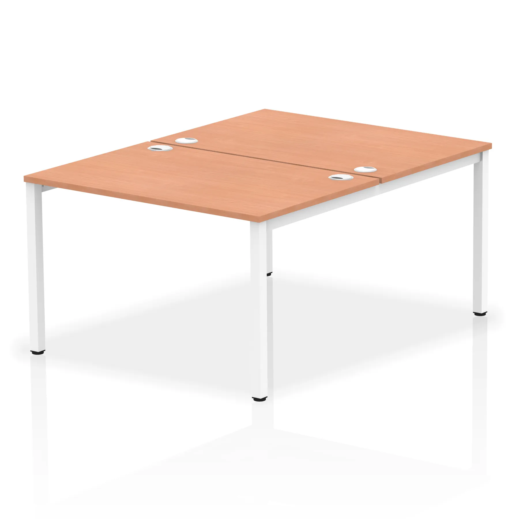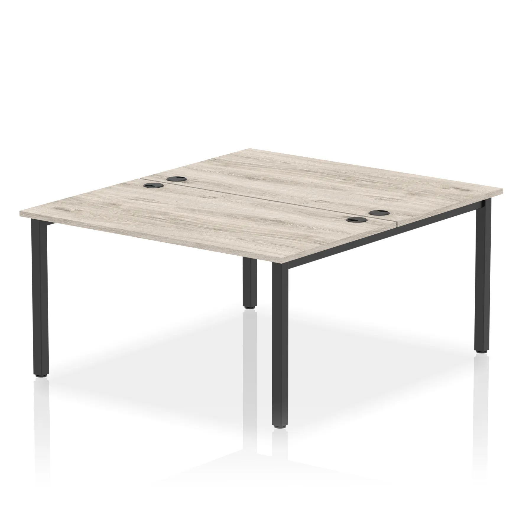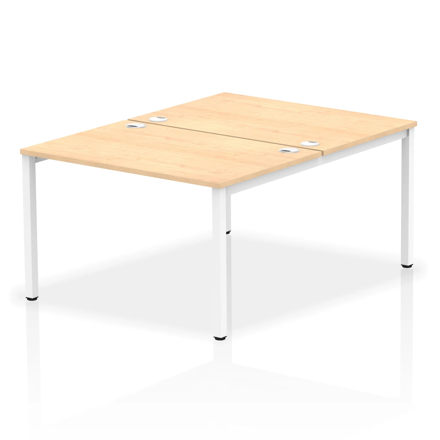 • Conjoinable frame system allows for easy adaptability • Stylish powder coated goal post leg design • Double cable ports for easy cable management • 25mm thick tops with 2mm protective edging • Adjustable Feet • Choice of 7 wood finishes and 3 leg colours • Weight Capacity: 100kg per user
