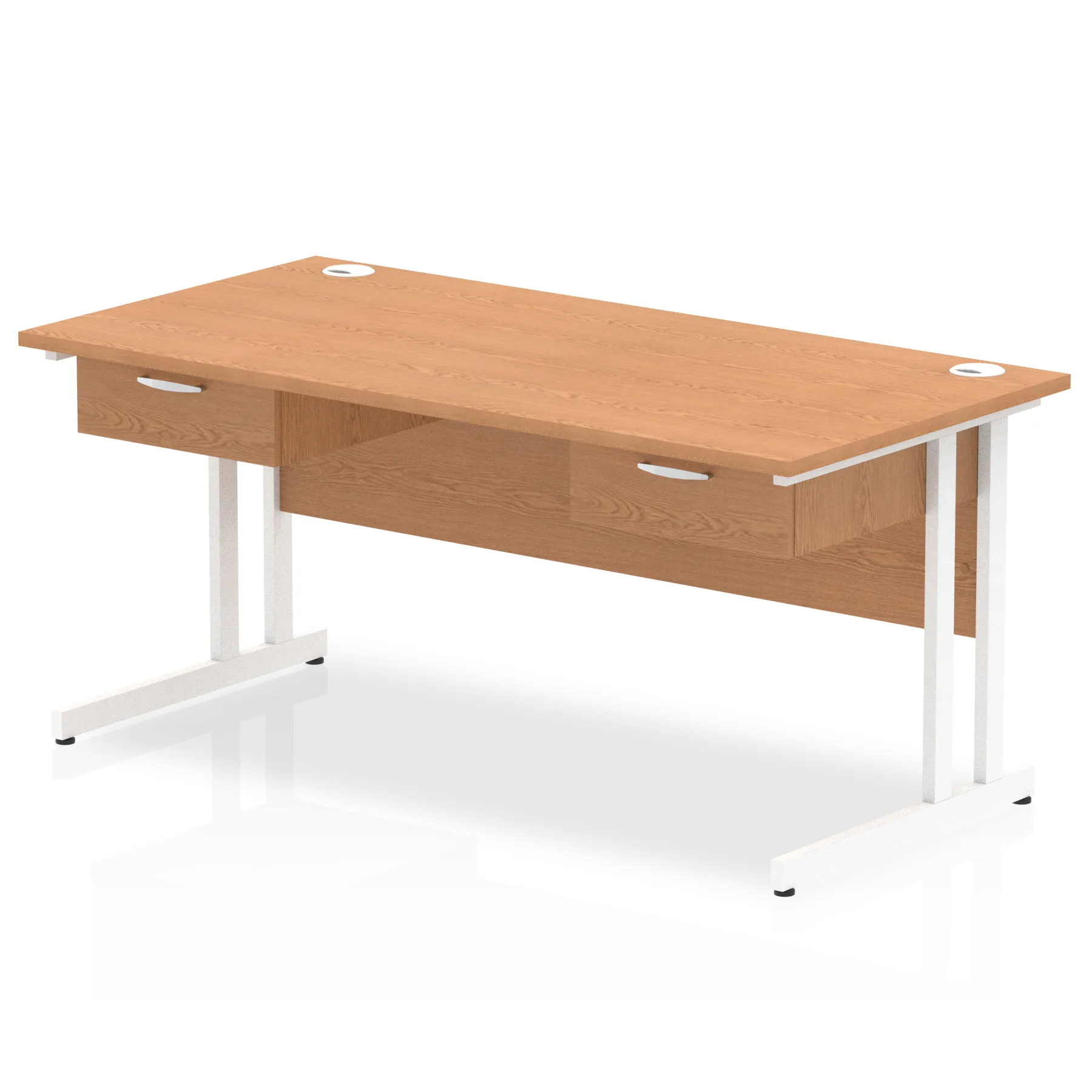 Impulse Cantilever Straight Desk White Frame With Two One Drawer Fixed Pedestals