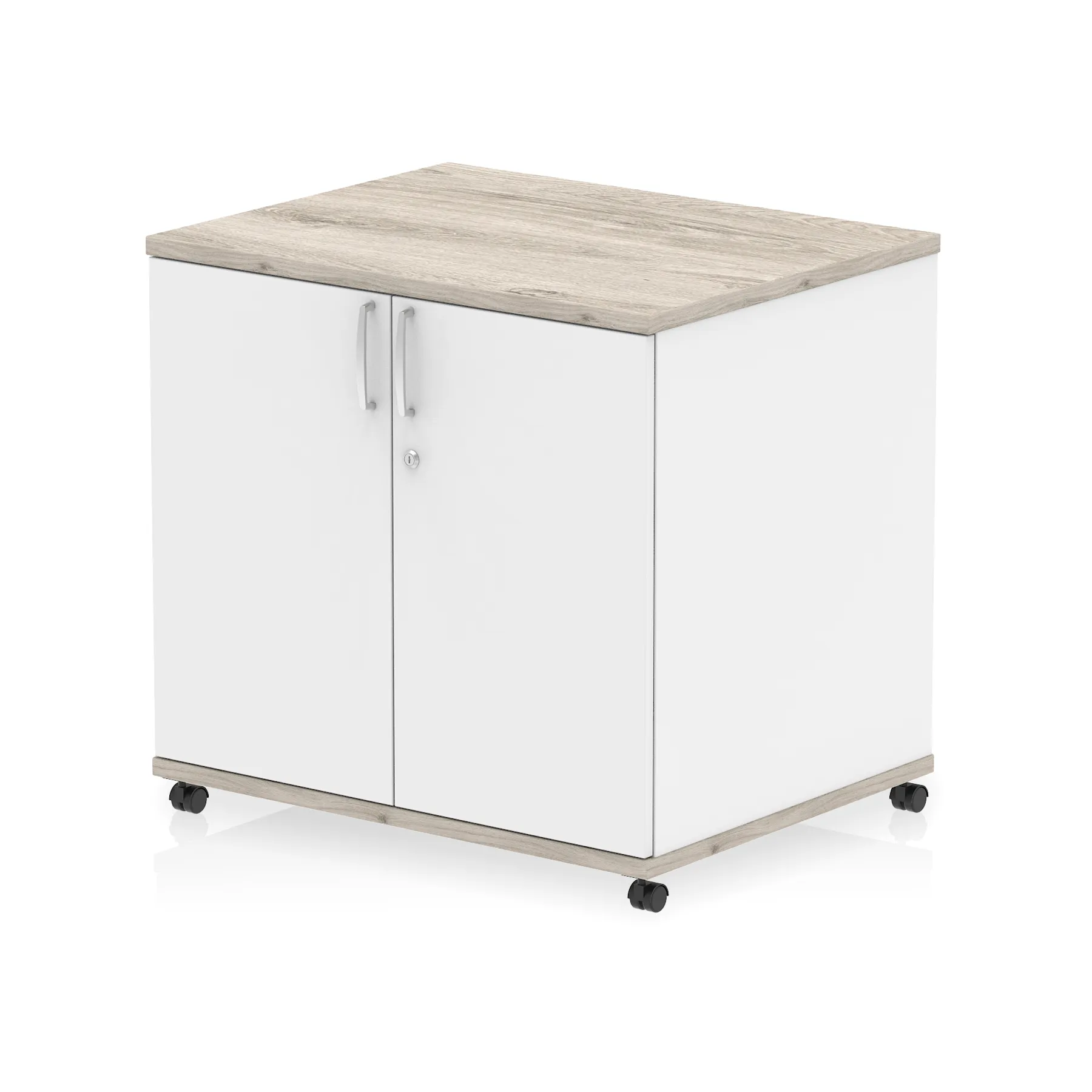 • Impulse 800 wide cupboard • 25mm thick wood finish • Fits on end of 600 deep desk • 2mm abs protective edges • Steel to steel fixings • 18mm side walls • Adjustable shelf • Mobile castors • Heat resistant melamine finish • Solid back board • Matching doors • Weight Capacity: 20Kg per shelf