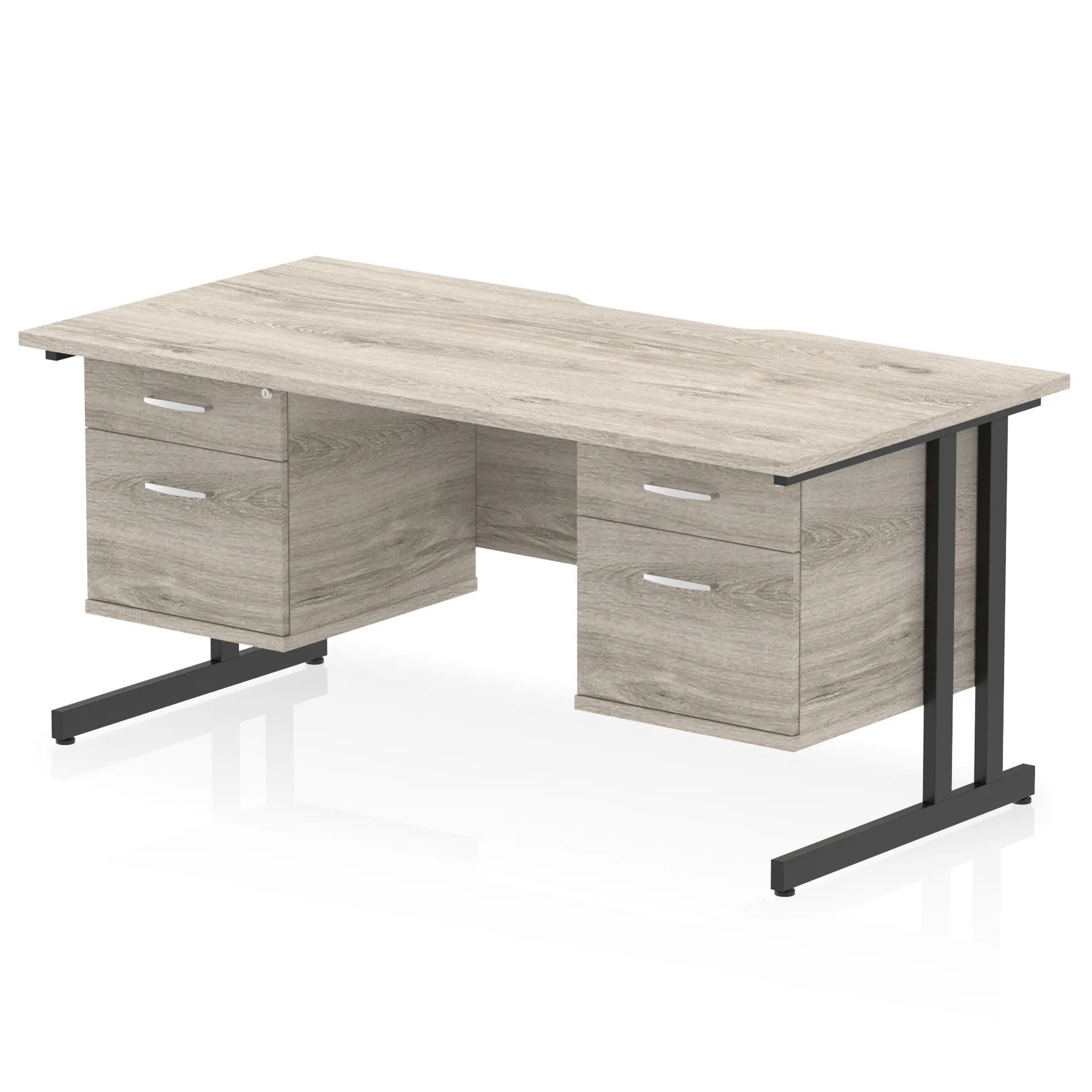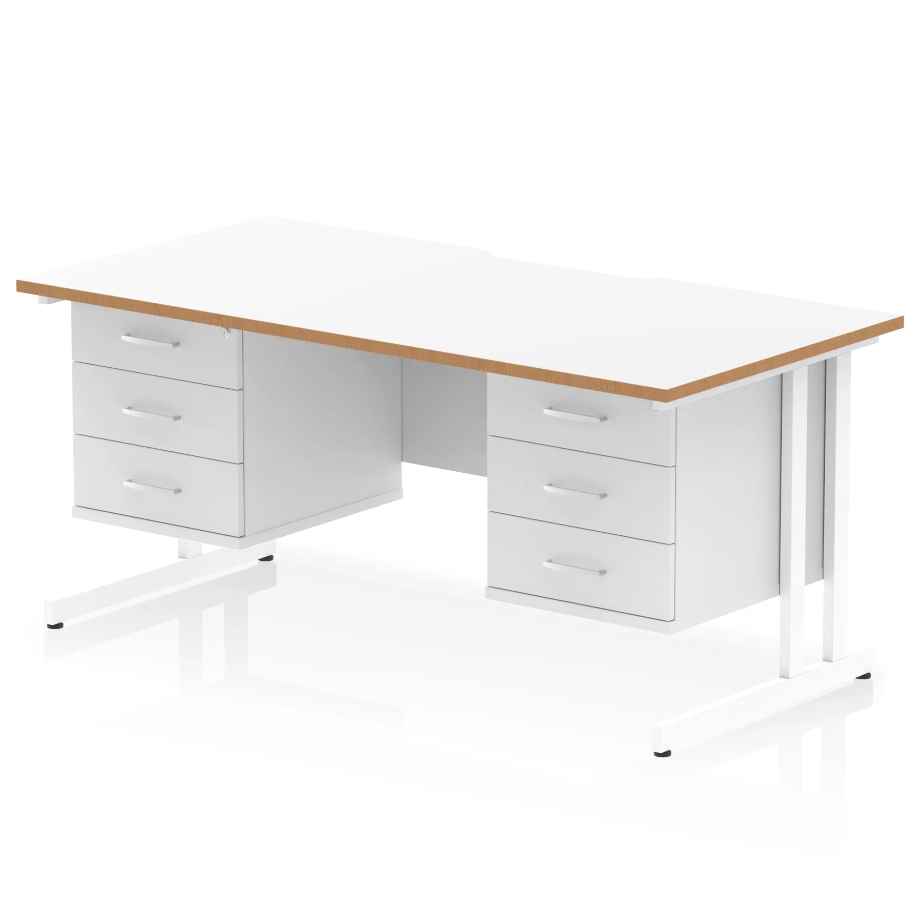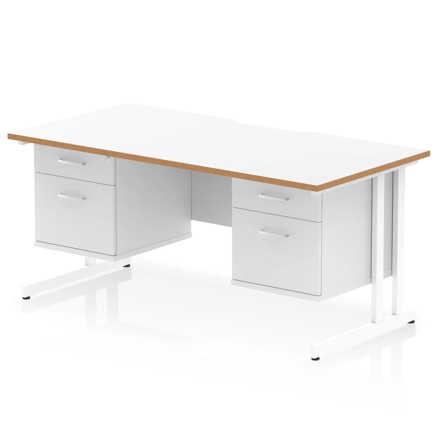 Impulse Scalloped Edge 1600mm Cantilever Straight Desk With Two Fixed Pedestal