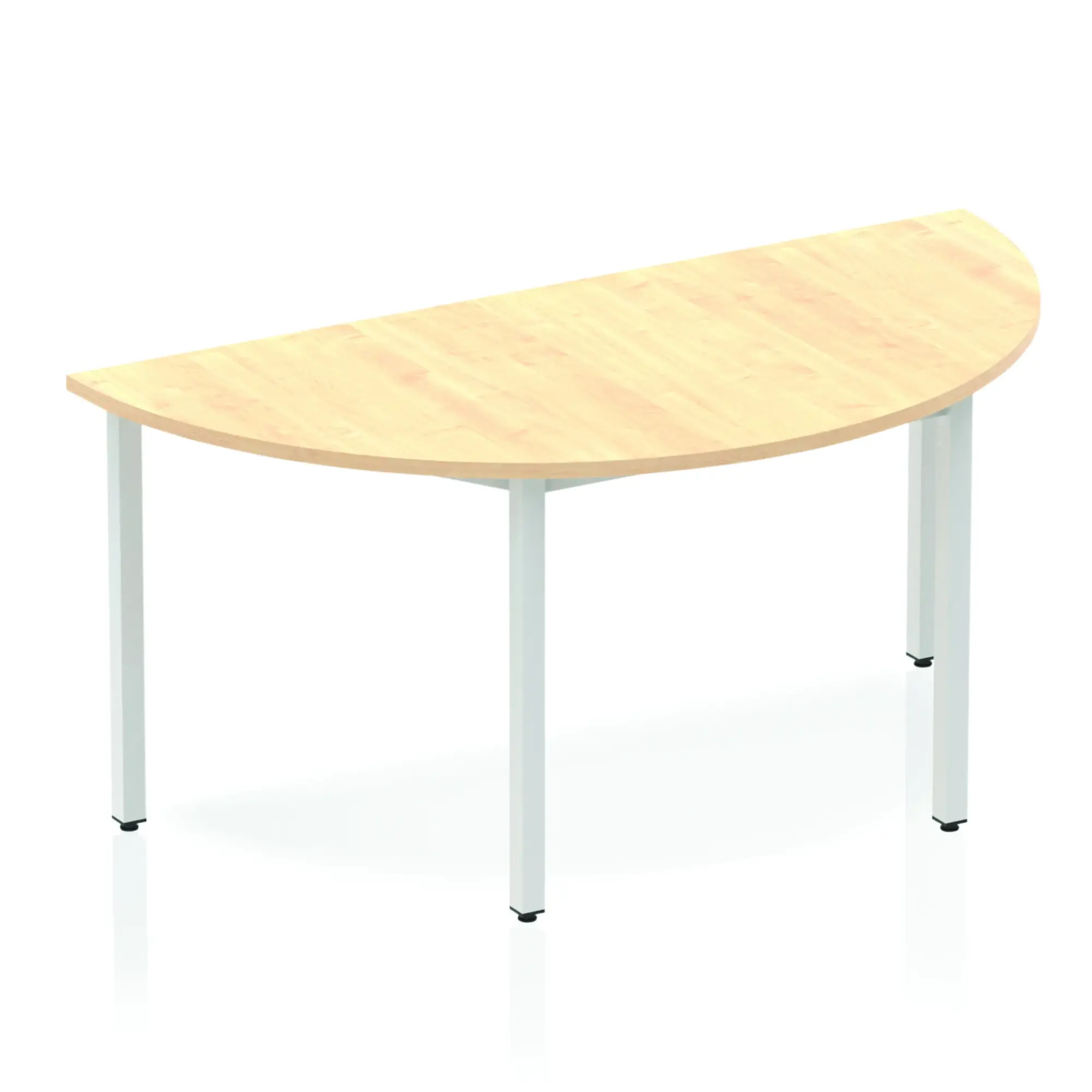 Impulse freestanding meeting table • Classic semi-circle shape • Provides excellent team working environment • 18mm thick top • Attractive silver coated box frame leg • 2mm abs protective edging • Heat resistant beech melamine finish • Weight Capacity: 100Kg