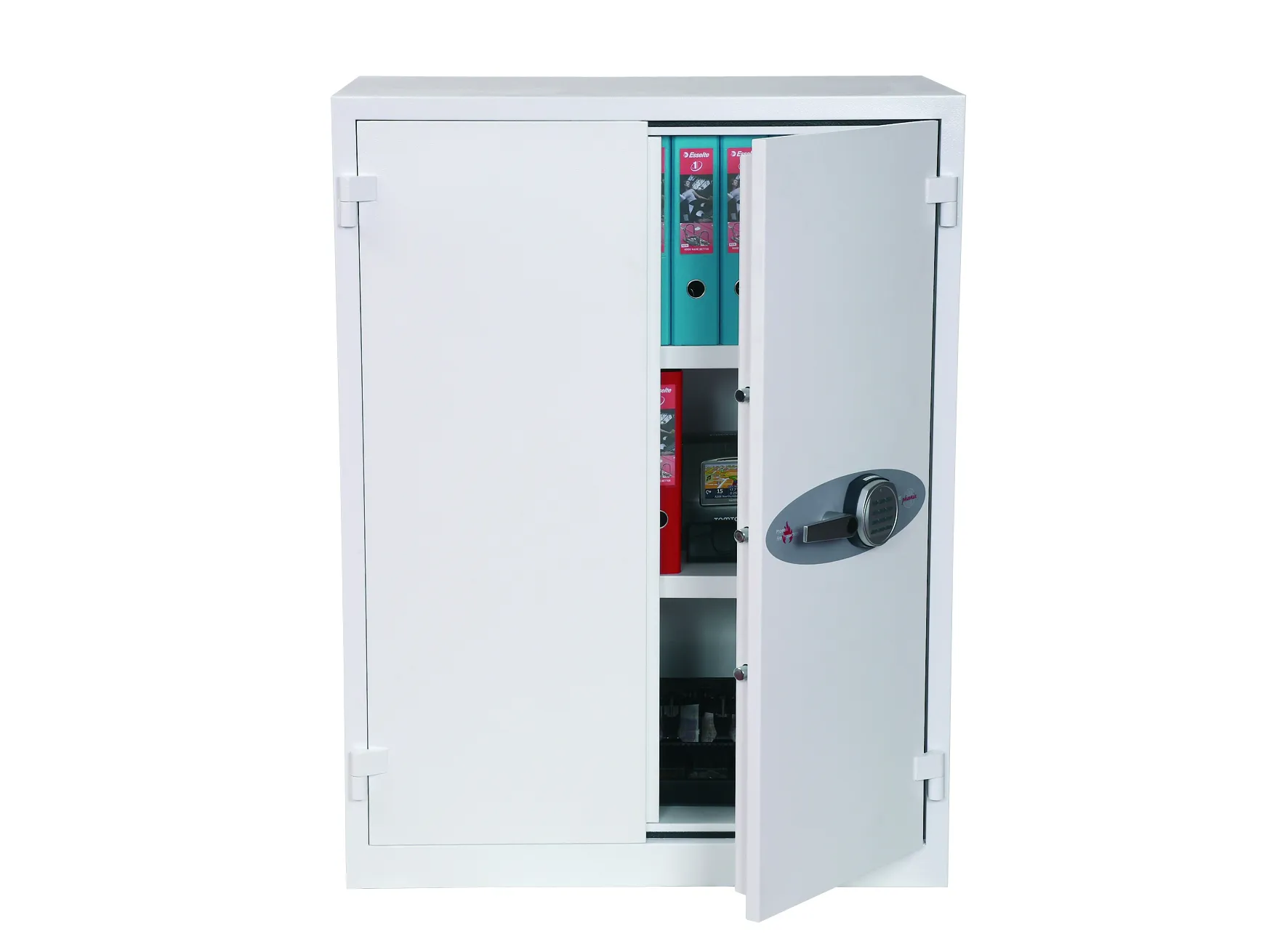 FIRE PROTECTION – Provides 30 minutes fire protection for paper records at 500 °C | SECURITY PROTECTION – The safe is recommended for overnight cash cover of £1,500 or valuables cover of £15,000 | CONSTRUCTION – High security 3 way espagnolette boltwork provides great strength and attack resistance | SPECIAL FEATURES – Supplied with 2 height adjustable shelves that also includes hanging rails for lateral files as standard | COLOUR – Finished in a high quality scratch resistant White paint RAL9003