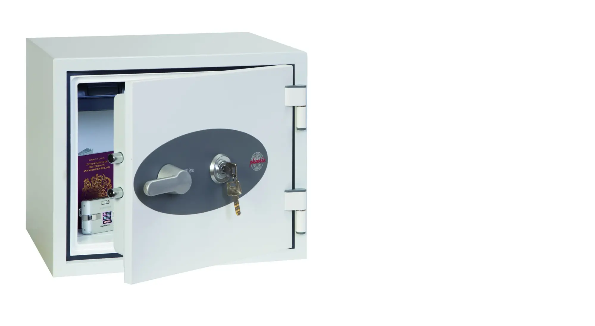 FIRE PROTECTION (PAPER) – Tested to the International NT Fire 017 – 60 fire test standard, at the Swedish SP Testing Centre providing 60 minutes fire protection for paper documents | FIRE PROTECTION (DIGITAL MEDIA) – Tested to MTC – DIP120 – 60DM fire test standard, providing 60 minutes fire protection for digital media, DVD’s, USB memory sticks & hard drives | SECURITY PROTECTION – The safe is recommended for an overnight cash risk of £2,000.00 or £20,000.00 valuables and is also ready prepared for floor fixing, with fixing bolts for concrete floors supplied | DROP TEST – Drop tested from 9.1 metres for resistance to the impact of falling through the burning floors of a building or the collapse of the building | SPECIAL FEATURES – Supplied with 4 internal key hooks, pull out drawer and (for Size 2 or 3) height adjustable shelf | COLOUR – Finished in a high quality scratch resistant paint RAL9003 White